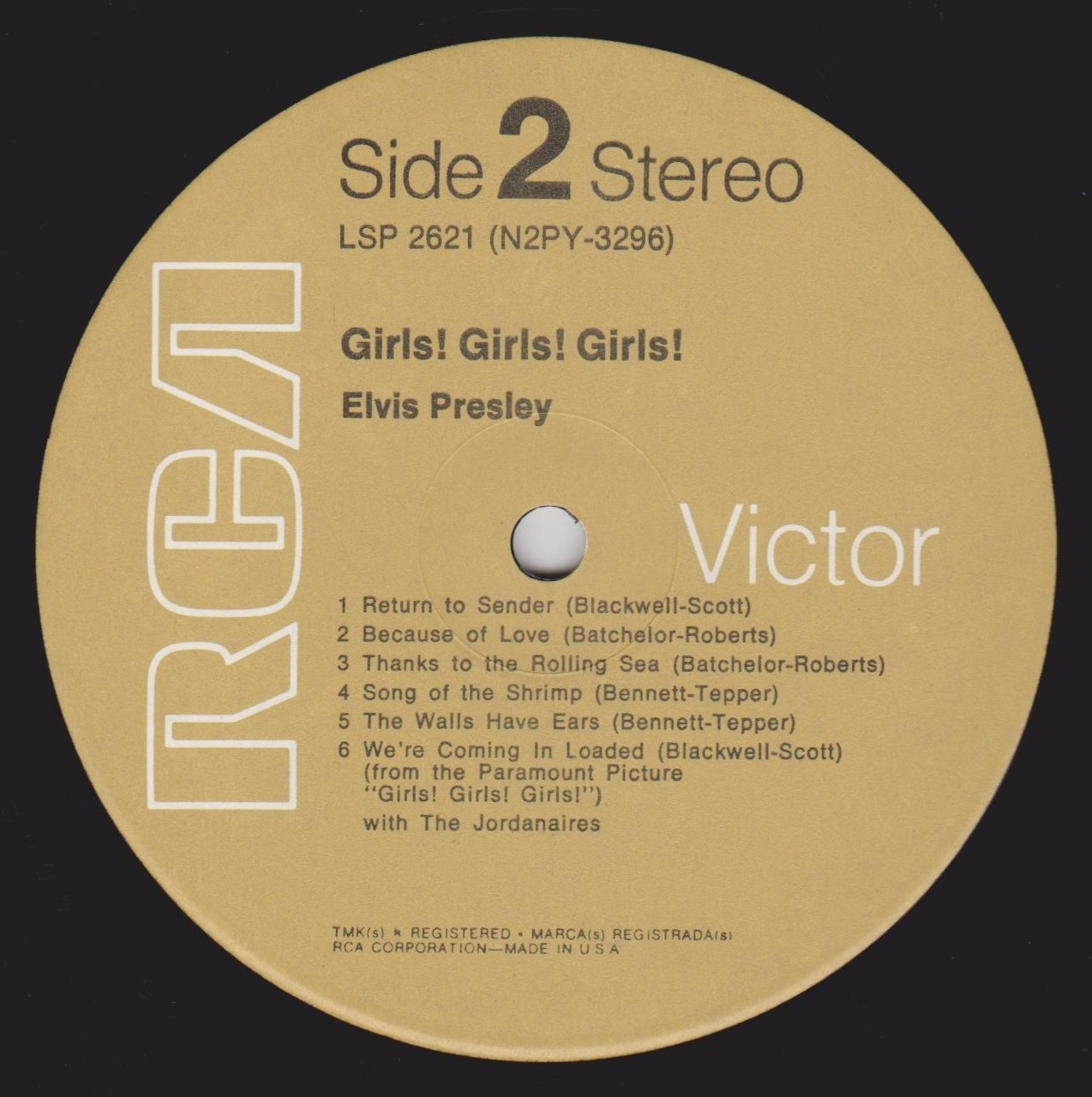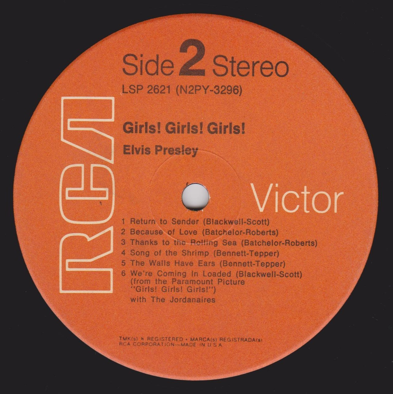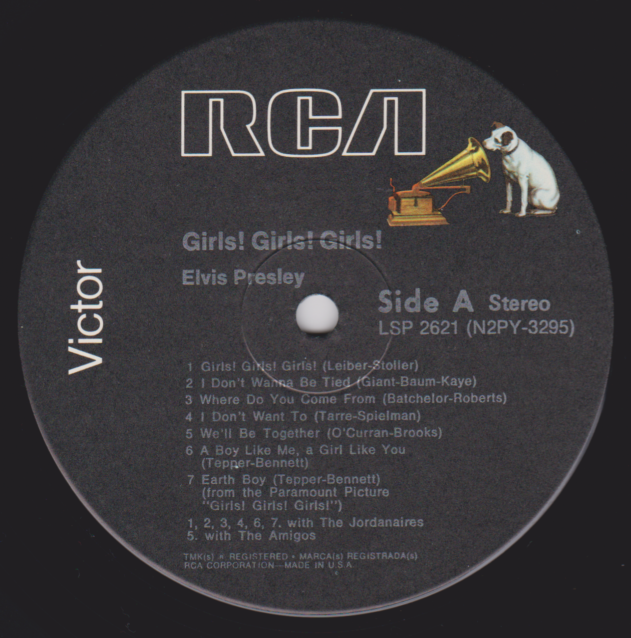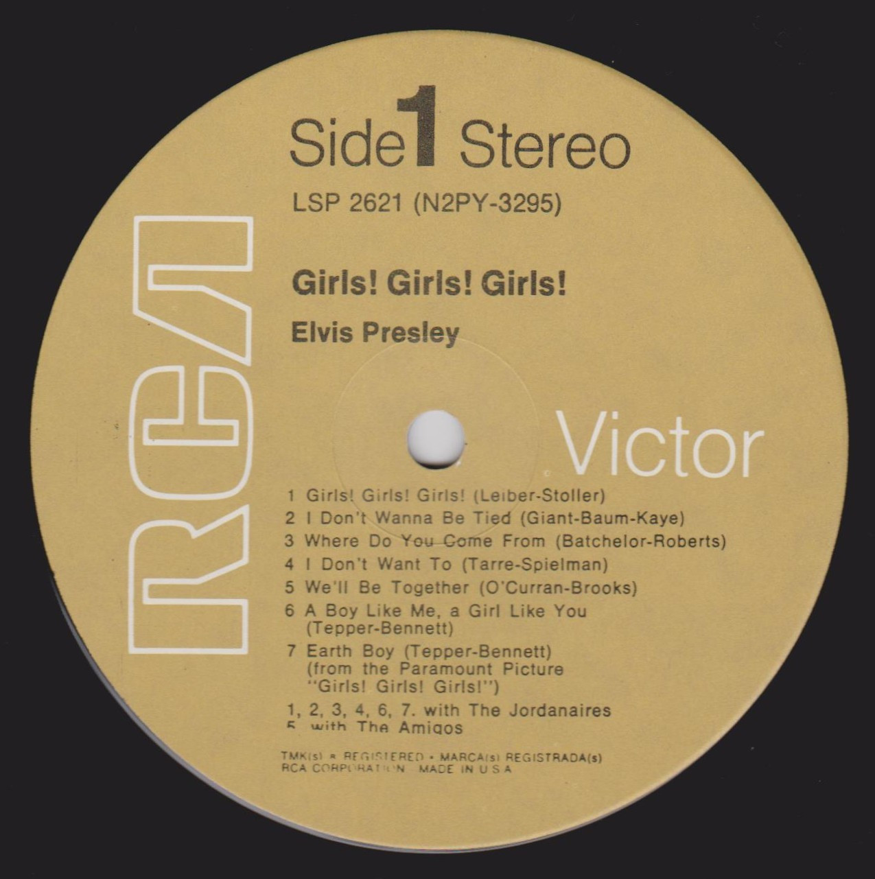 Girls! Girls! Girls! is the sixteenth album by Elvis Presley, released on RCA Victor Records in mono and stereo, LPM/LSP 2621, in November 1962. Recording sessions took place at Radio Recorders in Hollywood on March 26, 27, and 28, 1962. It peaked at #3 on the Top Pop Albums chart. It was certified Gold on 8/13/1963 by the R.I.A.A.