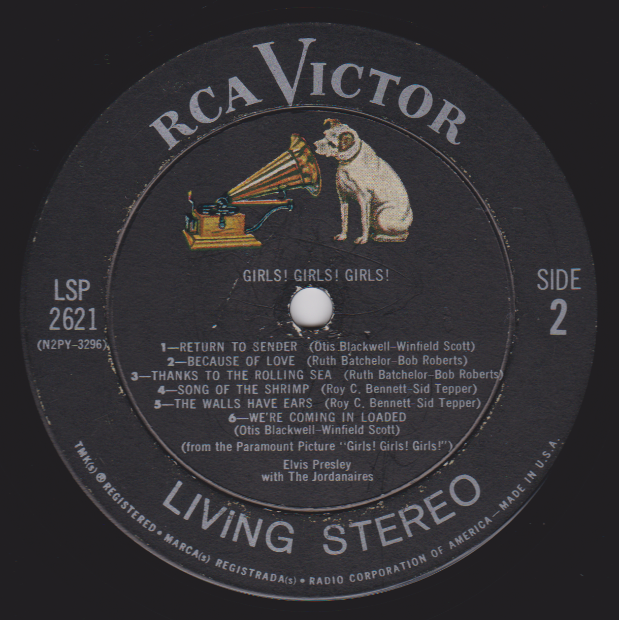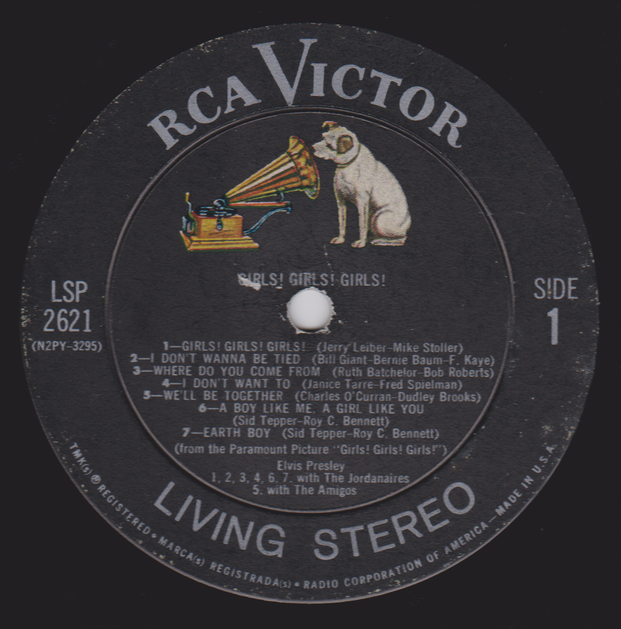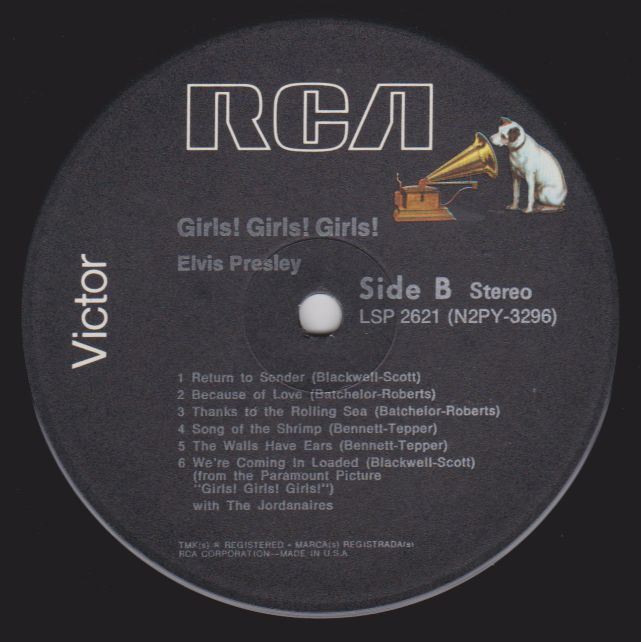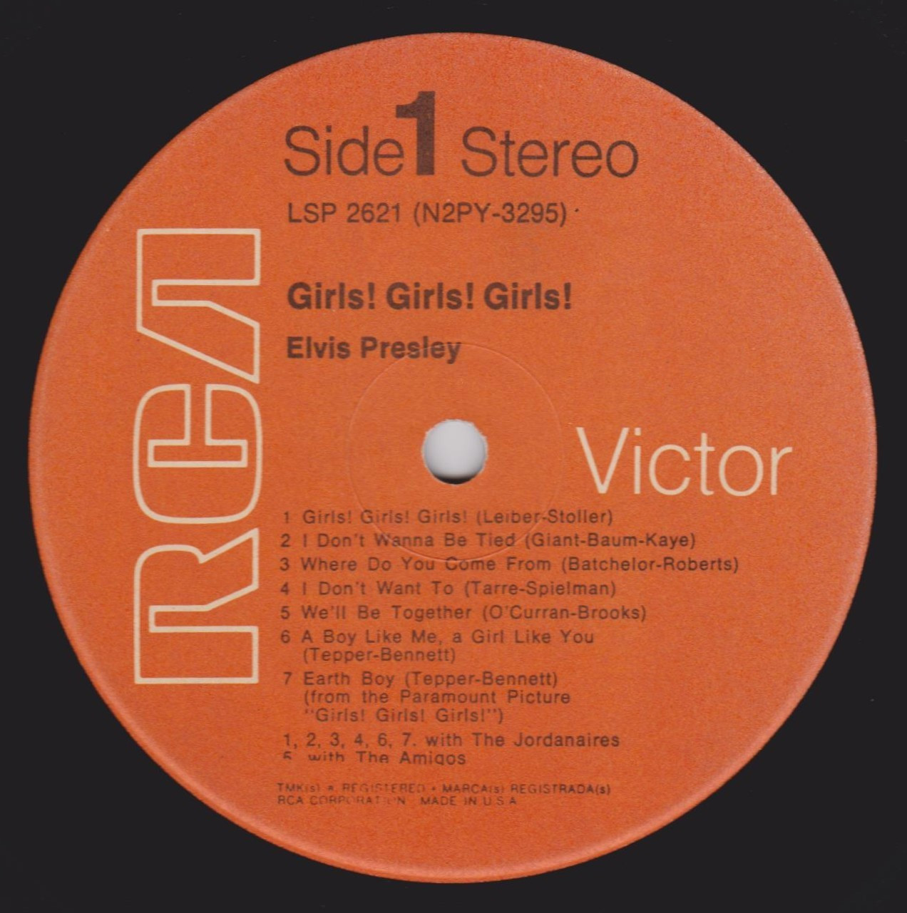 Girls! Girls! Girls! is the sixteenth album by Elvis Presley, released on RCA Victor Records in mono and stereo, LPM/LSP 2621, in November 1962. Recording sessions took place at Radio Recorders in Hollywood on March 26, 27, and 28, 1962. It peaked at #3 on the Top Pop Albums chart. It was certified Gold on 8/13/1963 by the R.I.A.A.